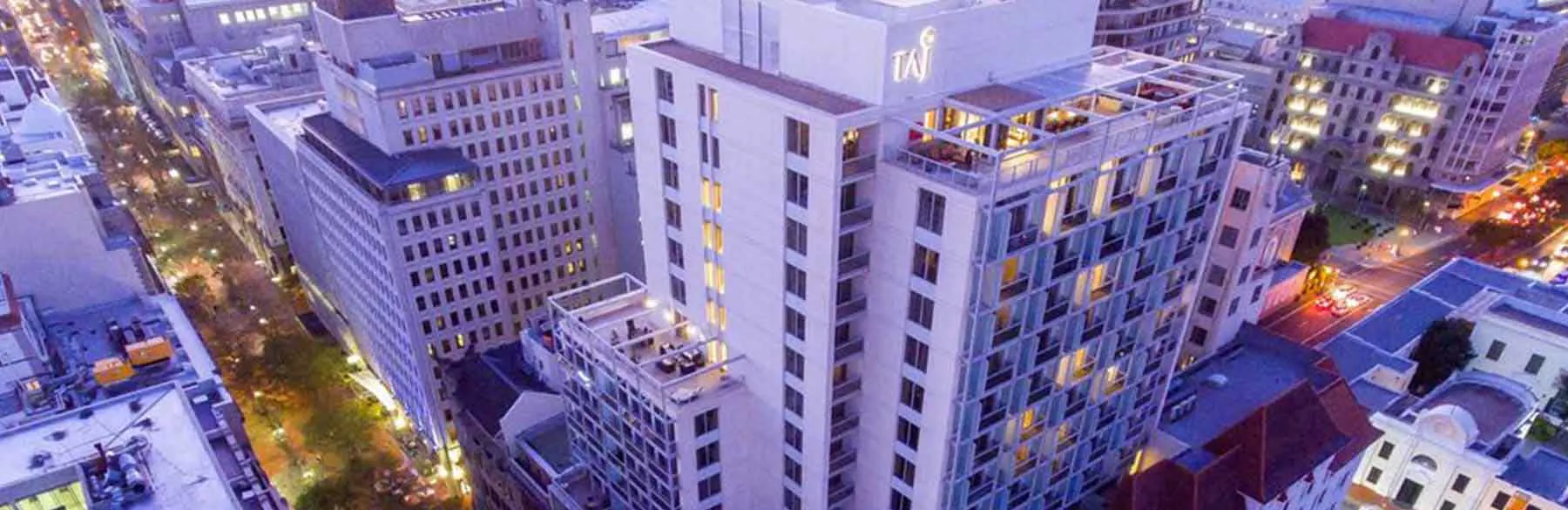 The Taj Cape Town Hotel is located in Cape Town, South Africa, Slave Lodge, St. George's Cathedral and Groote Kerk they all are just 100 feet away from the Hotel, South Africa Library, Houses of Parliament and Old Town House they all are just 200 meters from the Hotel, Cape Town City Hall and Company Gardens they both are 400 meters from the Hotel and Hotel is only 17 kilometers away from the Cape Town International Airport (CPT).