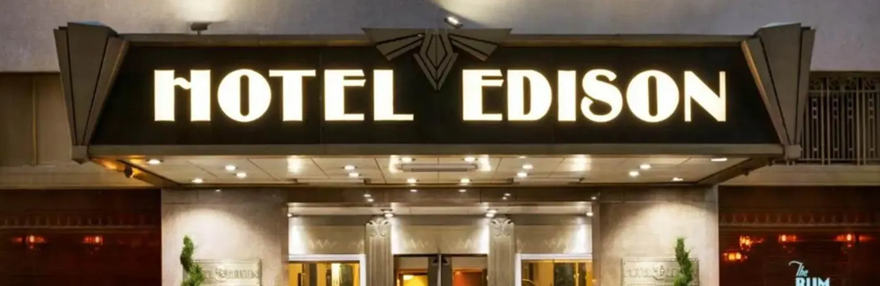 Hotel Edison is located in the heart of New York's exciting, historic theater district and steps away from the excitement of Times Square. Also convenient to all public transportation. Only 45 minutes from LaGuardia Airport and 60 minutes from JFK Airport.